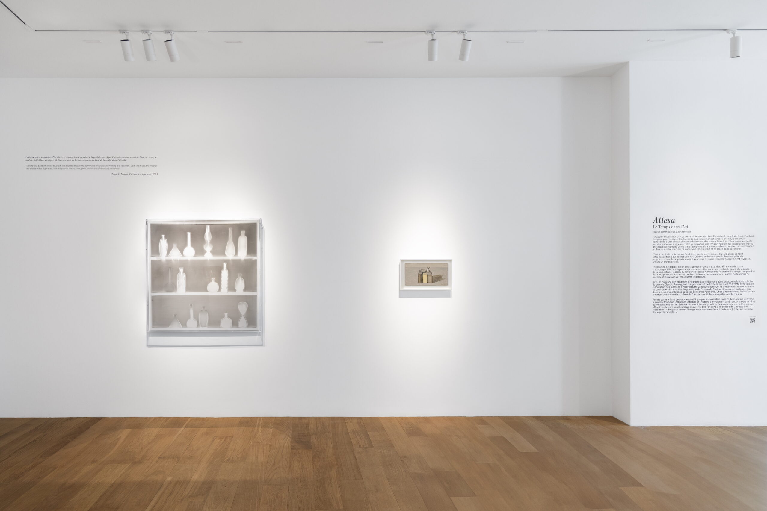 « Attesa » est un mot riche de sens et de nuance, intimement lié à l’histoire de la galerie. Il est utilisé par Lucio Fontana pour caractériser les fentes de ses célèbres toiles monochromes.