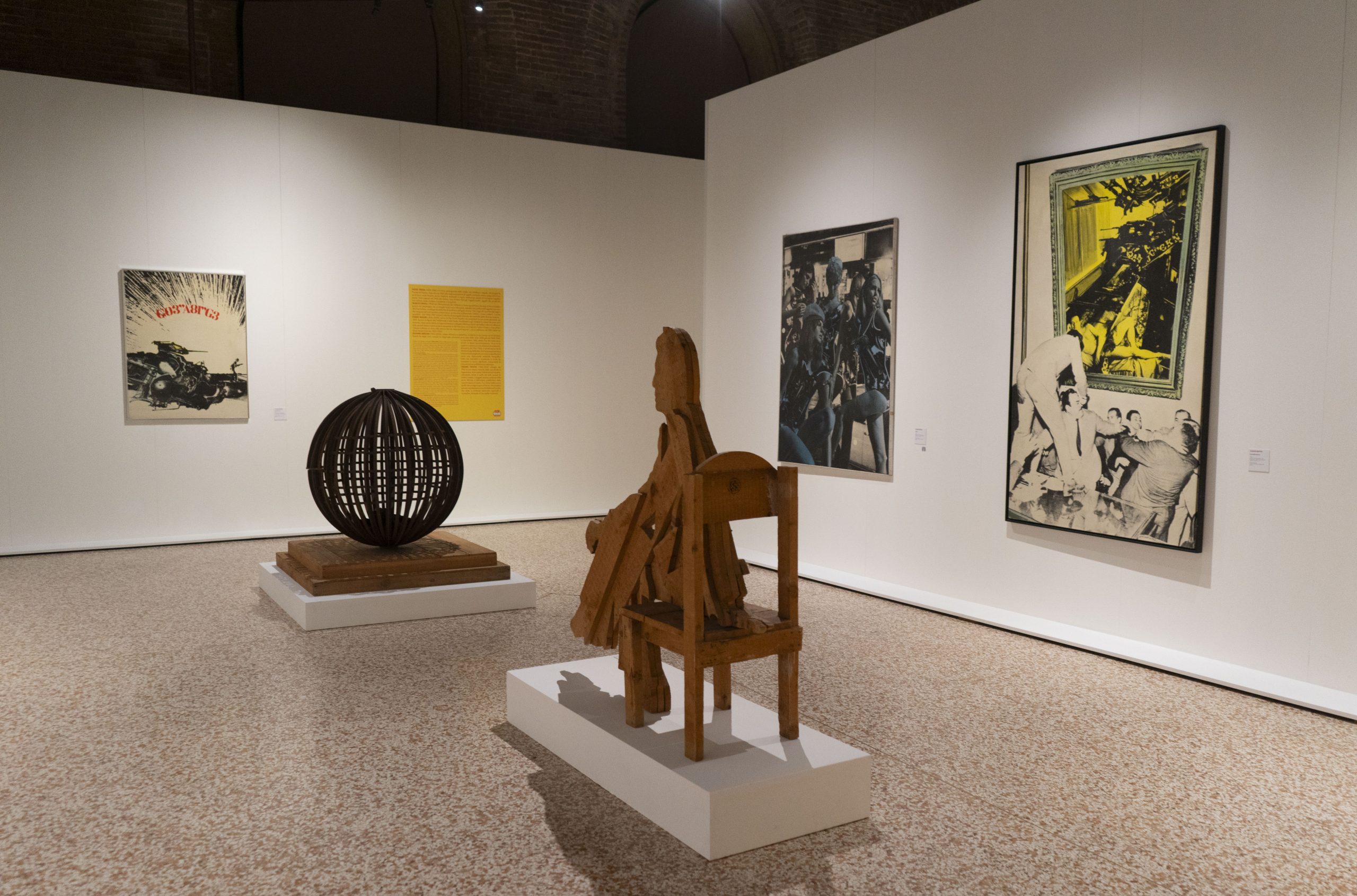 Mario Ceroli et Renato Mambor à l’exposition « POP / BEAT, Italia 1960 – 1979 » – Basilica Palladiana, Vicenza