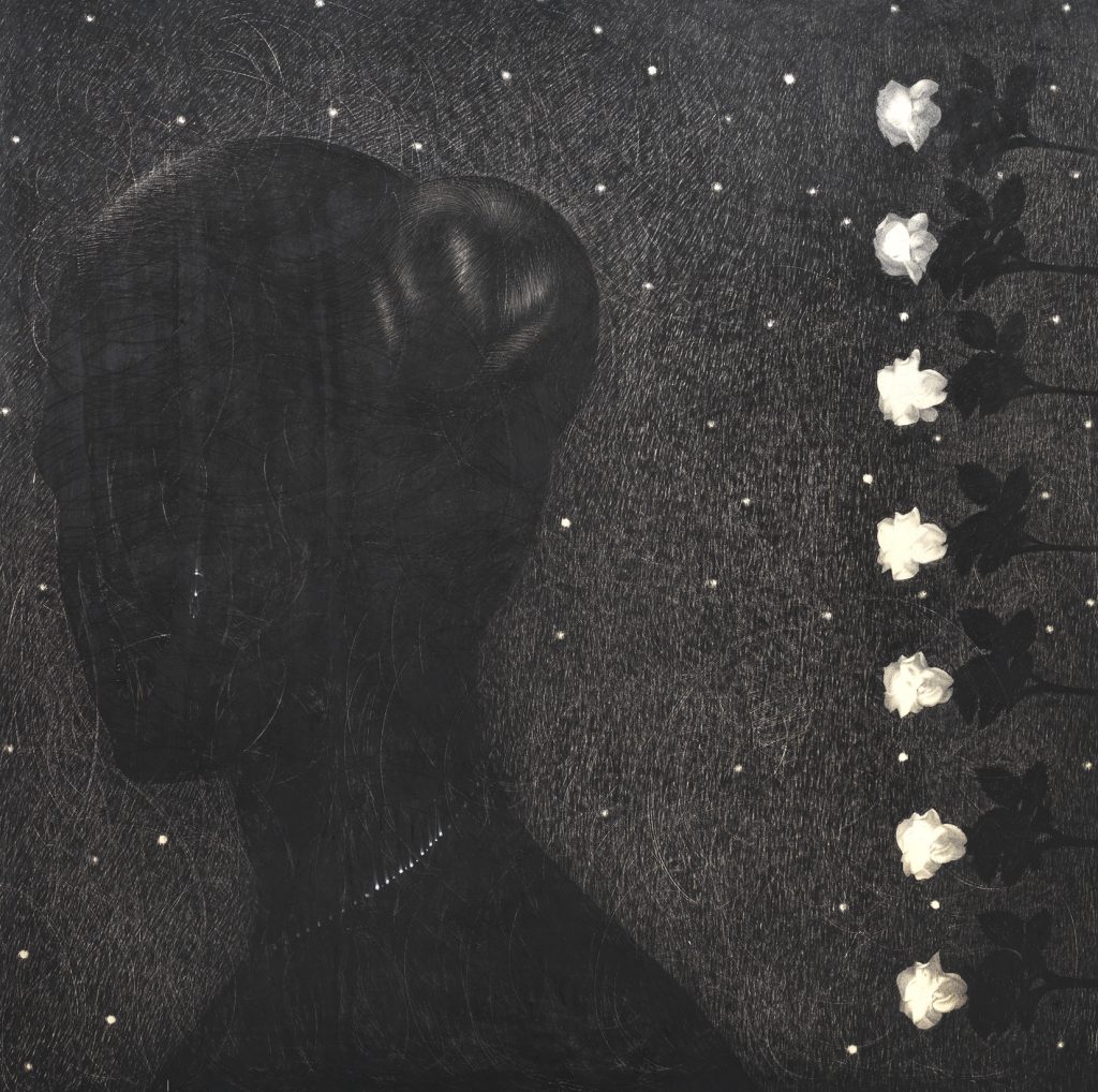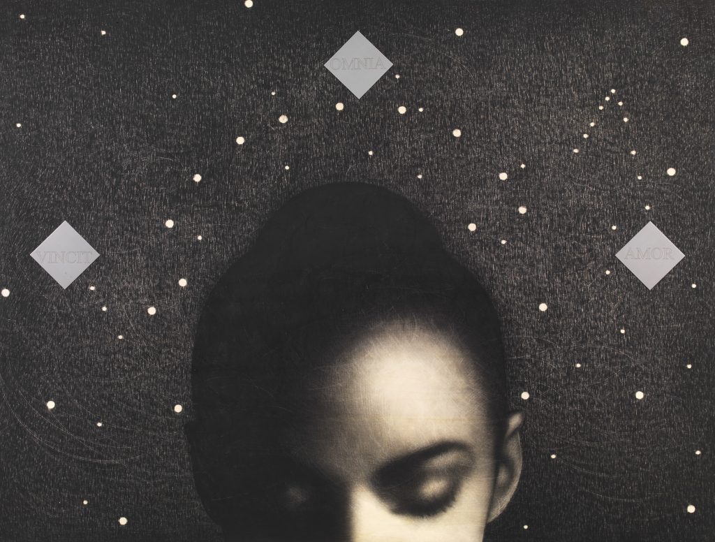 La mostra sarà inoltre arricchita da una serie di opere che ritraggono, in particolare, volti femminili che affiorano da cieli stellati o da misteriosi sfondi scuri. Queste figure si concretizzano attraverso le intense sfumature pittoriche che Omar Galliani ottiene con paziente ed inteso lavoro, utilizzando matita, tempera e carboncino su tavola di pioppo, ora per risaltarne la bellezza ed il fascino misterioso, ora per mostrarne la profonda spiritualità ed intensità dei sentimenti che questi volti nascondono e ci rivelano piano piano nell’osservarli, in un dialogo continuo che si instaura con l’osservatore.